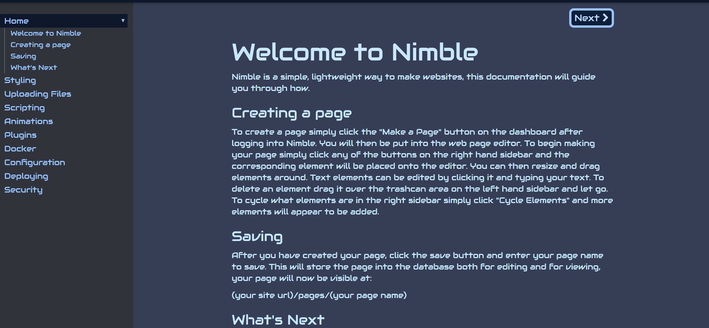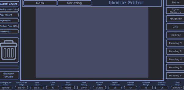 Nimble is one of my largest projects, being a full drag and drop website manager with block based scripting, file managment, accounts, TFA, styling elements, a plugin system and more. It was made over several months and I am quite proud of it as its one of my more sucessful projects and I learned PHP to make it.