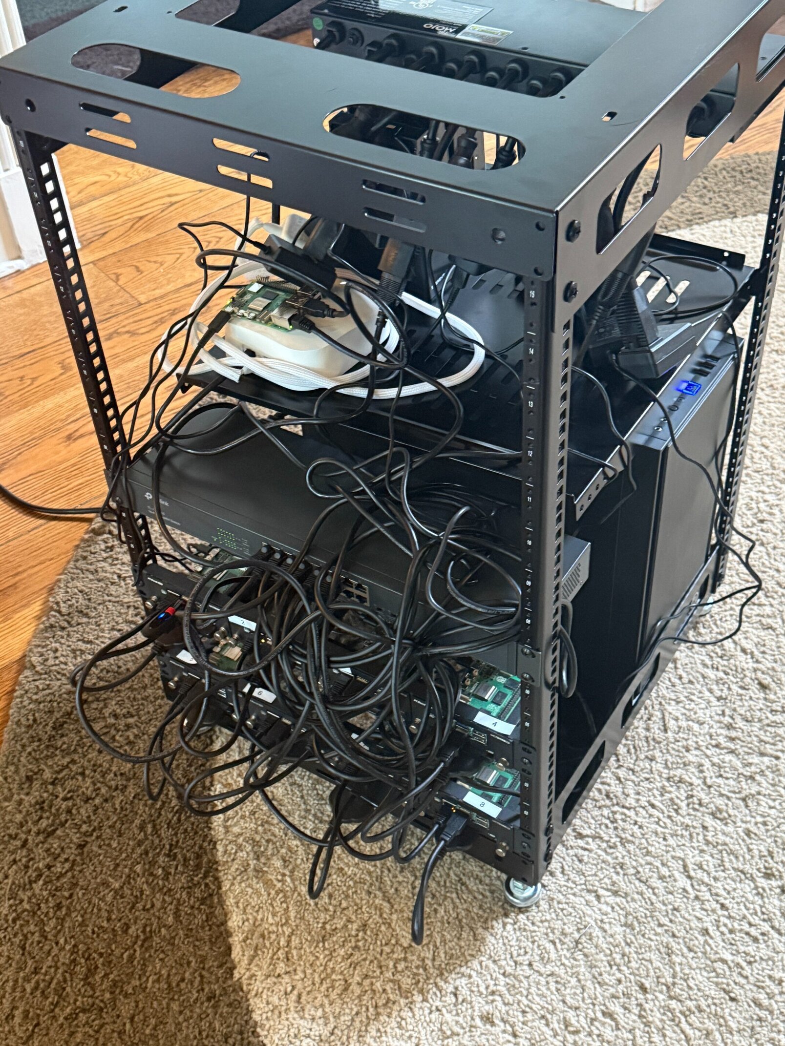 Recently I upgraded my server to a full server rack I built, with alot of storage a raspberry pi cluster and a main computer, it runs many of my self hosted apps and code.